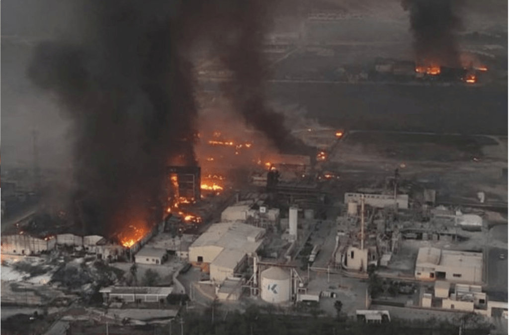 Al tiempo que como se indica el fuego comenzó en terrenos baldíos; se extendió a la zona industrial.