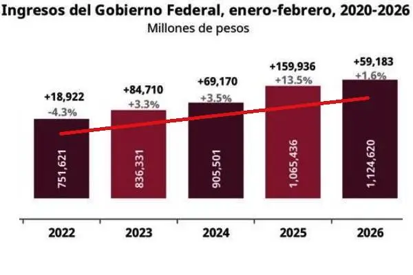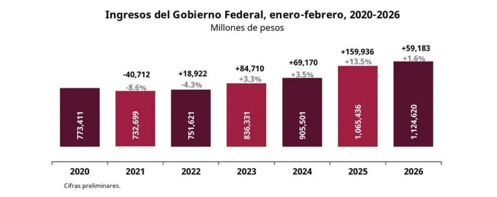 En el primer bimestre de 2026, se obtuvieron por el cobro de gravámenes 1 billón 21 mil 843 millones de pesos.