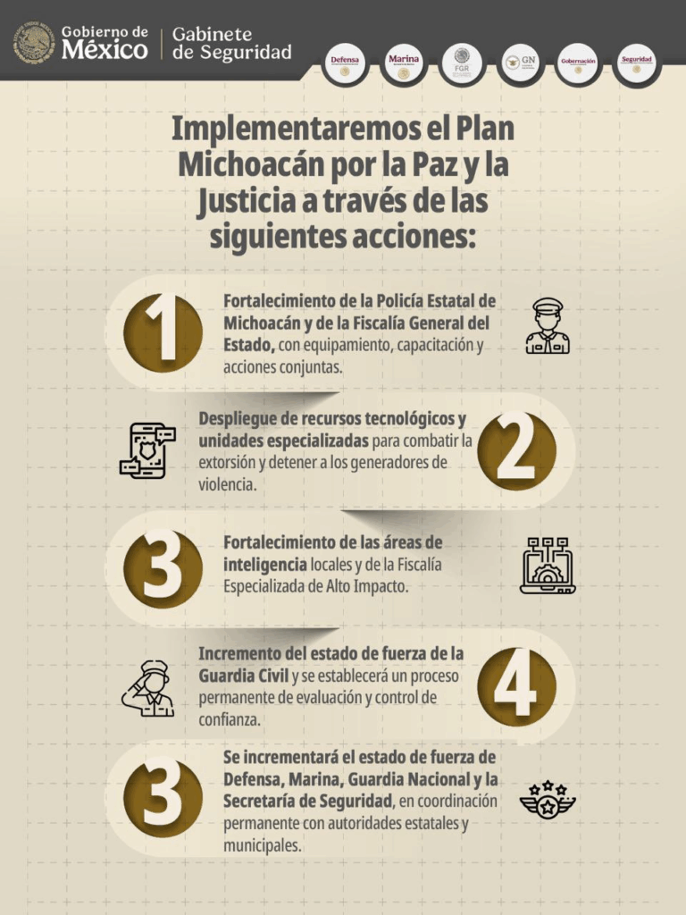 Los 12 ejes del Plan Michoacán por la Paz y la Justicia son: