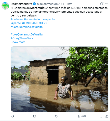 Esto llevó al desbordamiento del río Limpopo e inundó la ciudad de Chókwè, desplazando a miles de personas.