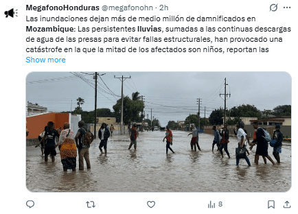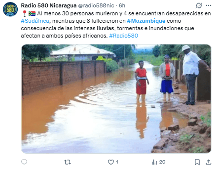 En Mozambique, el Instituto Nacional de Gestión de Desastres (INGD) reportó el lunes que más de 110 personas han perdido la vida desde que comenzó la temporada de lluvias en octubre.