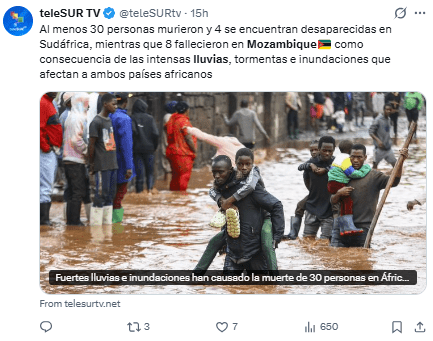 Ocurrió en las regiones de Limpopo y Mpumalanga, que limitan con Mozambique, debido a inundaciones y desbordamientos.