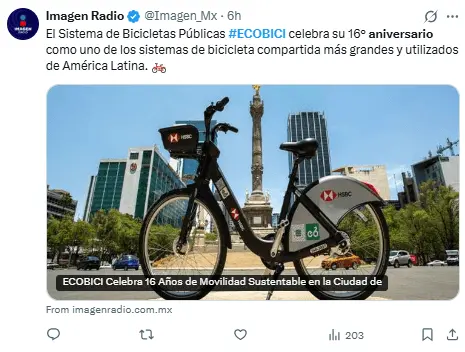 En el contexto de su 16º aniversario, ECOBICI reitera su compromiso con la movilidad sostenible y el bienestar en la Ciudad de México.