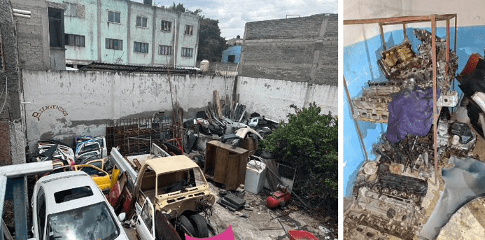 Cateos en inmueble y accesorias en S.M. Aztahuacán. Toneladas de autopartes presuntamente robadas, documentación y arma incautadas: CDMX
