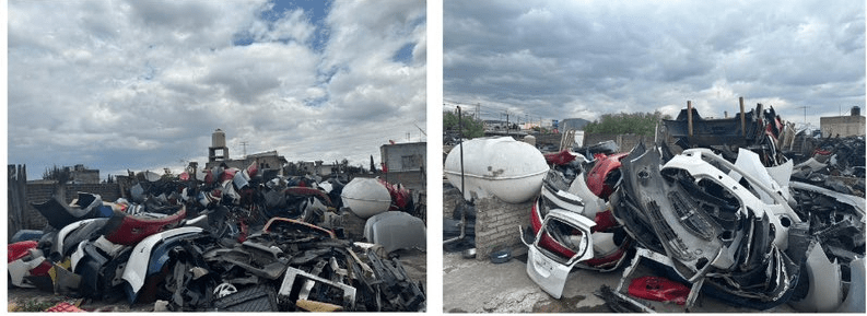 Un faro automotriz y un aproximado de 15 toneladas de autopartes de diferentes vehículos.