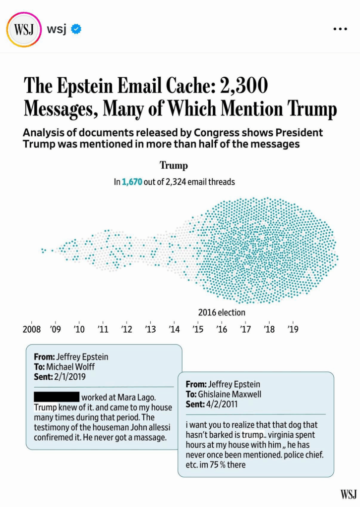 Regeneración, 14 de noviembre 2025– Mensajes de texto y correos electrónicos de Jeffrey Epstein, entre los más de 20 mil documentos publicados por la Cámara de Representantes, ofrecen una perspectiva de sus relaciones personales en los últimos años. En ellos se mencionaba repetidamente a Donald Trump.