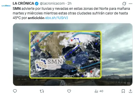 Lluvias y chubascos en el norte del país contrastan con el calor que se sentirá en la zona centro en los siguientes días