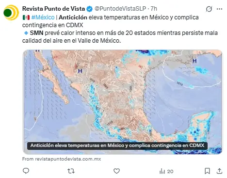 Esta situación, junto con la alerta ambiental activada en la Ciudad de México, crea un panorama desfavorable para la calidad del aire en esta semana.