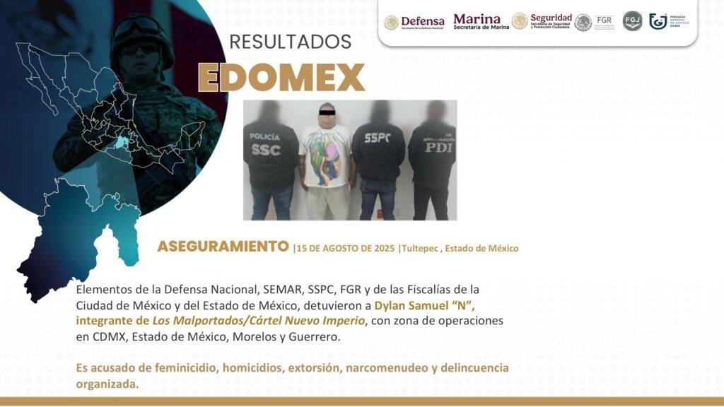 En este sentido, el funcionario señaló que del 1 de octubre de 2024 al 25 de agosto de 2025, suman más de 30 mil detenidos por delitos de alto impacto.