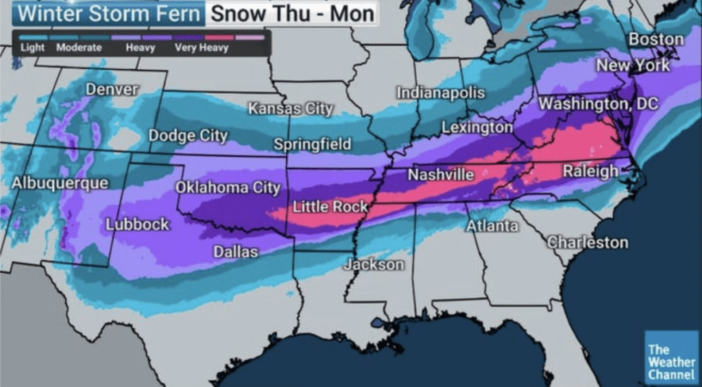 La tormenta invernal que viene, la llaman: major winter storm del 23-26 de enero, se está pronosticando como más severa y extensa que hace 2-3 años (2023-2024), especialmente en cobertura geográfica y combinación de amenazas (nieve pesada + hielo destructivo + frío extremo).