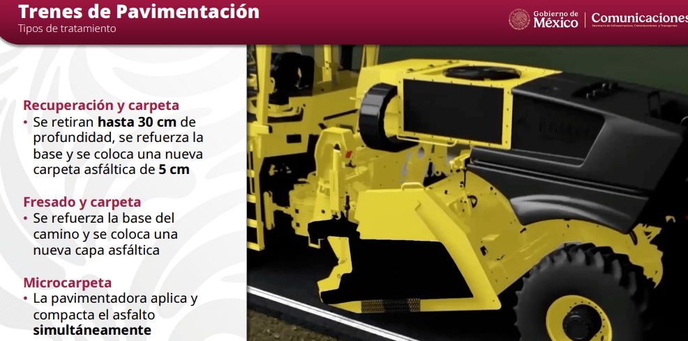 En cuanto a los trenes de pavimentación, indicó que el gobierno federal atendió 221 kilómetros el año pasado en la red federal libre de peaje con 20 equipos.