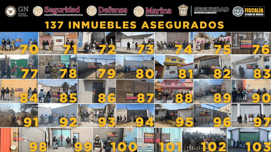 Regeneración, 17 de diciembre de 2025. La Fiscalía del Estado de México informó que en operación “Senda” cayeron 68 personas, se aseguraron 137 bodegas en 43 municipios donde encerraban los vehículos y guardaban la mercancía robada.