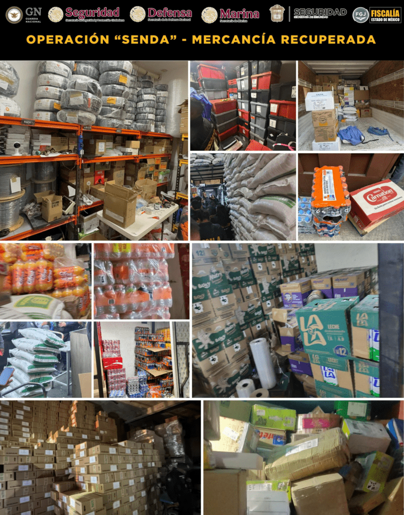 Operación Senda contra robo de transporte de carga. 4 días de acción simultánea. Miles de toneladas de autopartes, armas y otros: Edomex