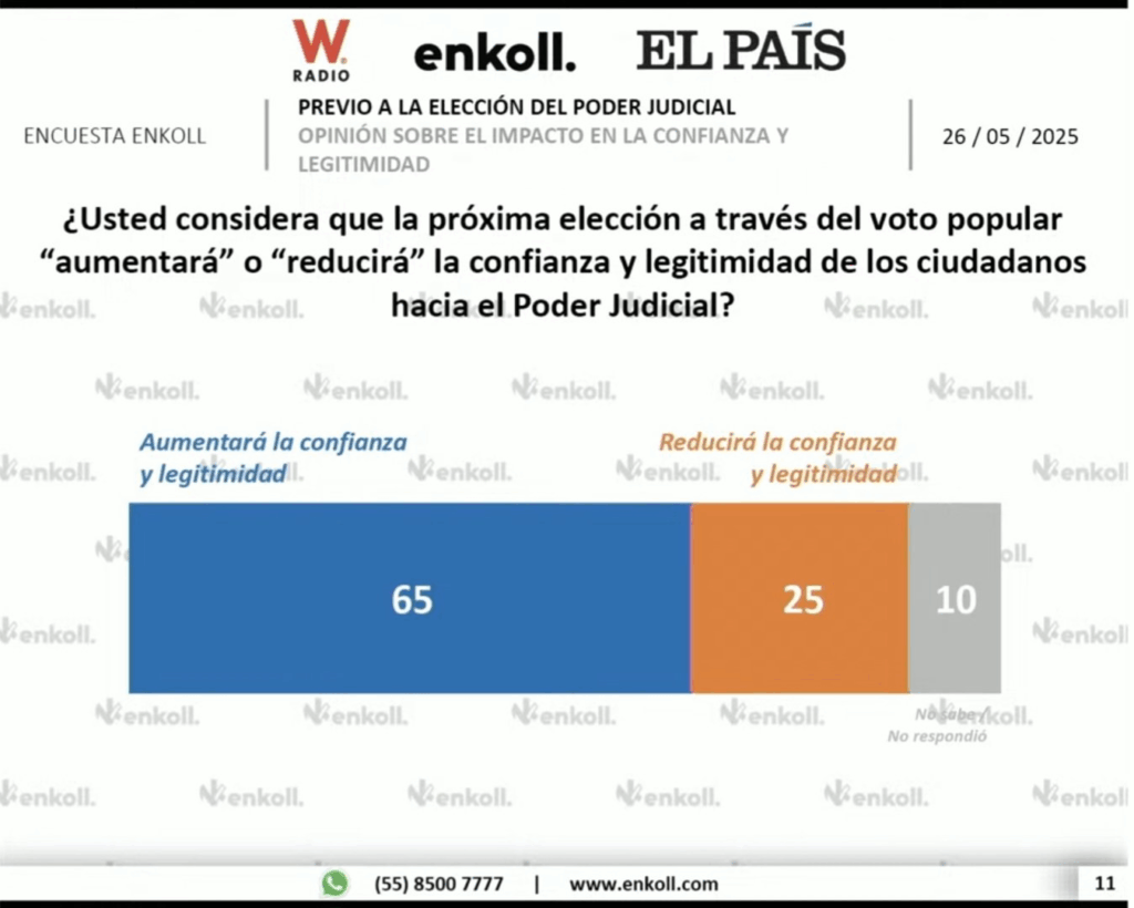 Además, el 65% de las personas que participaron dijo que esta elección podría mejorar la confianza en el sistema judicial de México.