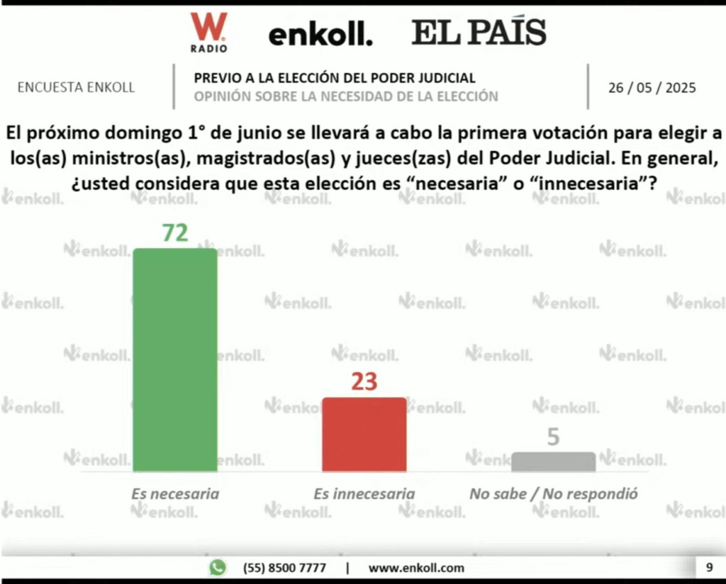La encuesta de Enkoll, mencionada por Sheinbaum y publicada por El País, muestra una visión clara: la mayoría de la gente apoya la elección directa de los integrantes del Poder Judicial.