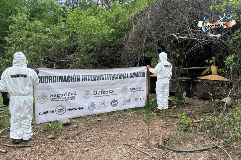 Sinaloa: Incautan 950 kg de metanfetamina, mil 600 litros de precursores líquidos y mil 625 de sólidos. Valen 80 millones
