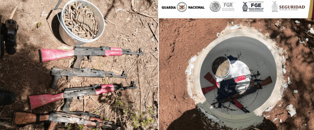 Mismos que contenían en armas 4 fusiles AK-47, calibre 7.62×39 mm, 84 cartuchos calibre .308” WIN y 710 cartuchos calibre 7.62×51 mm.