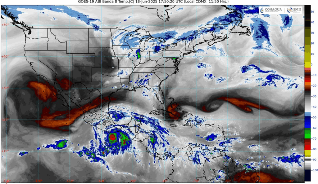 Por otra parte, en una actualización del Centro Nacional de Huracanes, difundida por Conagua, se indica que el huracán Erick continúa avanzando lentamente hacia las costas de Oaxaca y Guerrero.