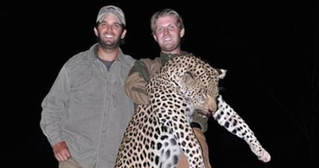 Regeneración, 03 de septiembre 2016.- El punto de crítica sigue centrado en Donald Trump, esta vez por una fotografía en la que aparecen sus dos hijos cargando a un leopardo al que cazaron.