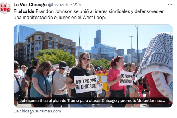 Regeneración, 3 de septiembre 2025–Hoy, el alcalde Brandon Johnson criticó duramente al presidente Donald Trump por su juego político con el personal de las Fuerzas Armadas de EE. UU.