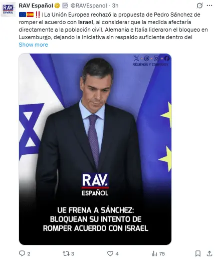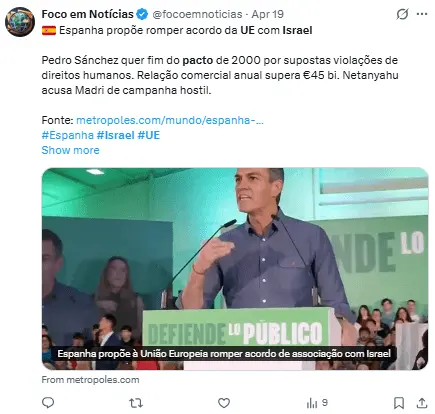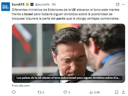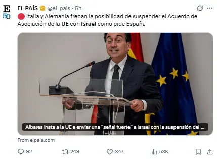 España, Eslovenia e Irlanda habían presionado a la UE para que abandonara el acuerdo por las violaciones a «derechos humanos» de Israel