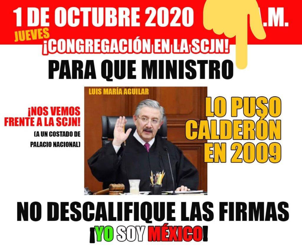 Regeneración, 25 de septiembre del 2020.Ante los señalamientos del ministro calderonista, Luis María Aguilar, de adelantar que se opondrá a los más de 2.5 millones de mexicanos que piden enjuiciar a los expresidentes.