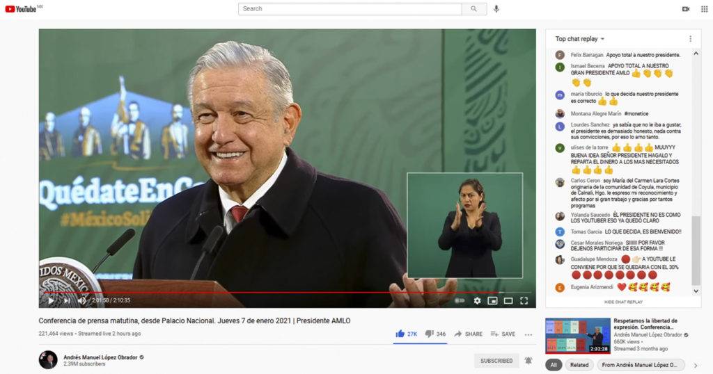 Regeneración, jueves 7 de enero, 2021. El presidente Andrés Manuel López Obrador descartó monetizar los videos de su cuenta en YouTube pues eso no corresponde con su papel de servidor público y es «un acto de comercio». Por Dante García Berlanga, @limpicatto.