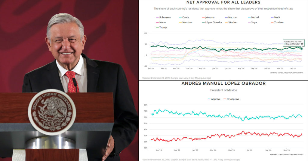 Así lo da a conocer la firma de inteligencia de datos Morning Consult, en su ‘tracker’ de aprobación de líderes globales. Se trata de una comparación de datos actualizados hasta el 23 de diciembre de 2020.