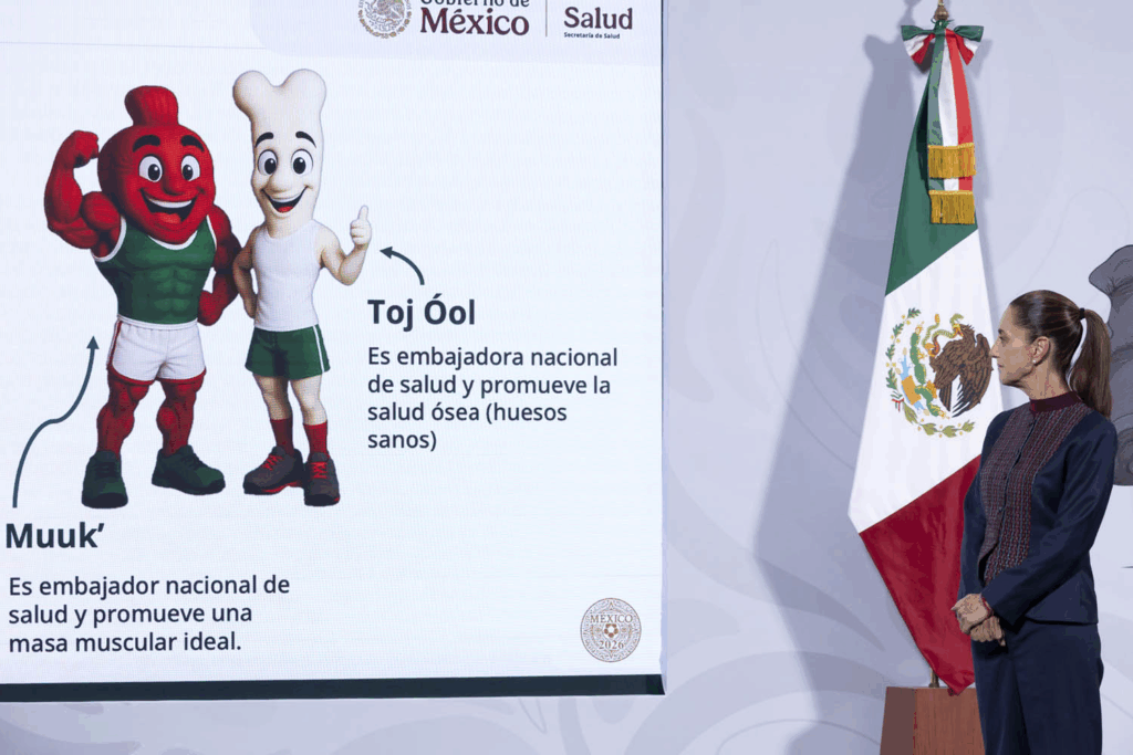El secretario de Salud, David Kershenobich, presentó a las dos mascotas embajadoras que realizarán el Programa de activación física con calentamientos previo a los partidos.