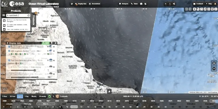 Y con datos de la constelación satelital Sentinel-1 de la Agencia Espacial Europea (ESA), la cual está compuesta por dos satélites gemelos (1A y 1C).
