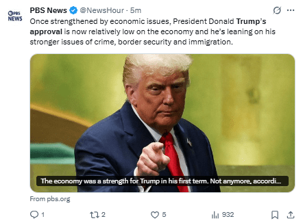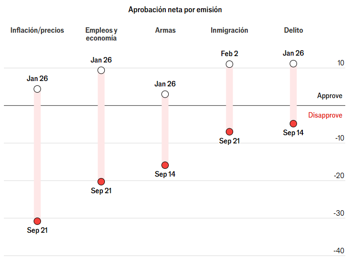 Los datos de YouGov también sugieren que los estadounidenses ahora desaprueban su gestión de la inmigración, tema central para su reelección.