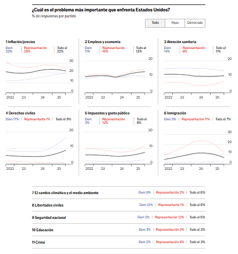 Los demócratas están más preocupados por la atención médica y el cambio climático.