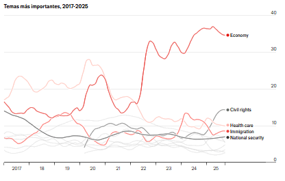 Durante el primer mandato de Trump, la opinión pública estuvo dominada por la preocupación por la atención médica, especialmente tras el brote de COVID-19.