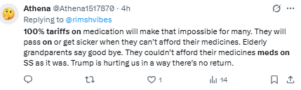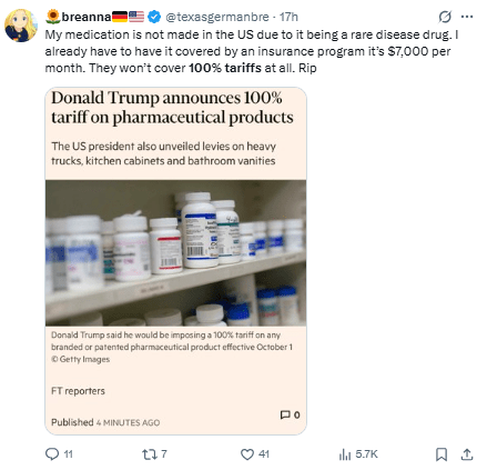 Una asociación farmacéutica advirtió que los medicamentos habían estado exentos de aranceles debido al aumento de costos y a las preocupaciones por la escasez.