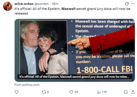 Esto, debido a una ley reciente aprobada por el Congreso, la Ley de Transparencia de los Expedientes Epstein.