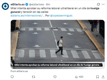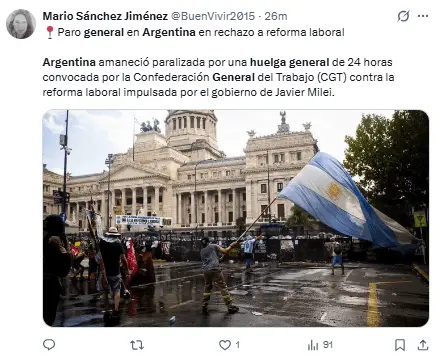 Esto es en señal de protesta contra la reforma laboral y las medidas de ajuste aplicadas por el régimen de Milei.