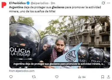 Regeneración, 9 de abril 2026– El Congreso argentino aprobó en la madrugada del jueves la reforma impulsada por el presidente Javier Milei que permite a las provincias redefinir áreas protegidas de glaciares para expandir la minería.