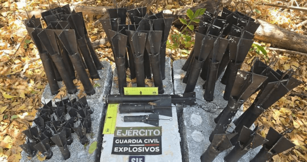 Ejército decomisa centenas de minas explosivas terrestres, otras adaptadas para lanzarse desde drones y tubos con mecha para uso manual en Sinaloa