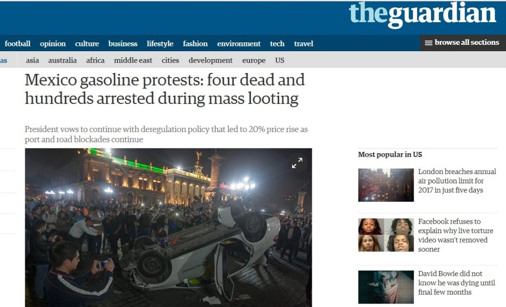 Protestas en México contra gasolinazo: cuatro muertos y cientos arrestados durante saqueos masivos: The Guardian