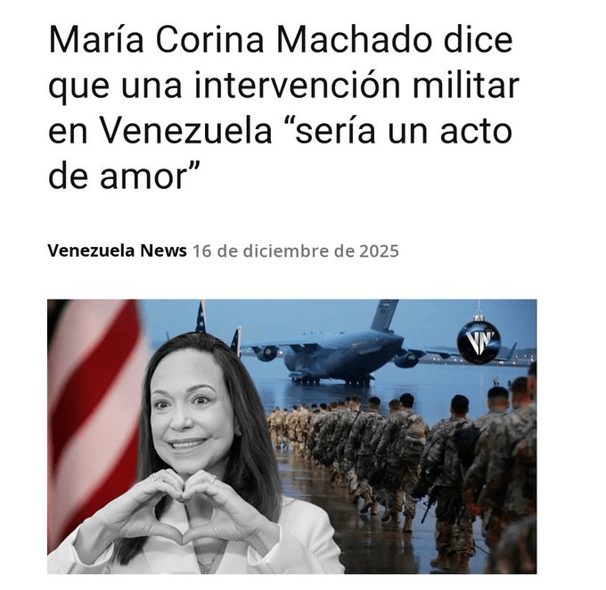 - El Instituto de Investigación para la Paz de Oslo (PRIO) confirmó que Machado “ha llamado a la intervención militar en Venezuela”.
