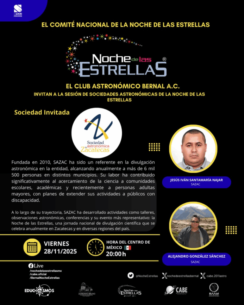 Además de la Asociación Mexicana de Planetarios; las Sociedades Astronómicas de la Noche de las Estrellas; y la SECIHTI.