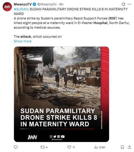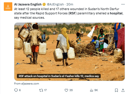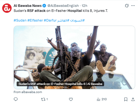 El grupo consideró a las RSF “plenamente responsables” del ataque y pidió a la comunidad internacional y al Consejo de Seguridad de las Naciones Unidas…