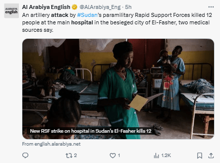 Una médica y un miembro del personal de enfermería se encontraban entre los heridos en el ataque al Hospital el-Fasher, dijo la Red de Médicos de Sudán en un comunicado el miércoles.