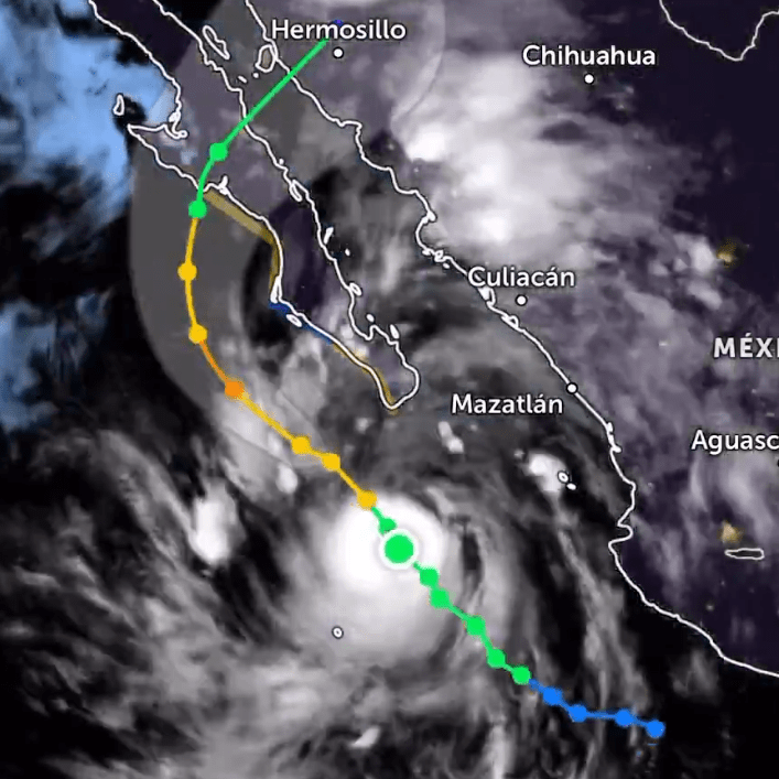 Posteriormente, cruzaría la península y podría llegar a las costas de Sonora el sábado 6 de septiembre ya como un ciclón post-tropical.