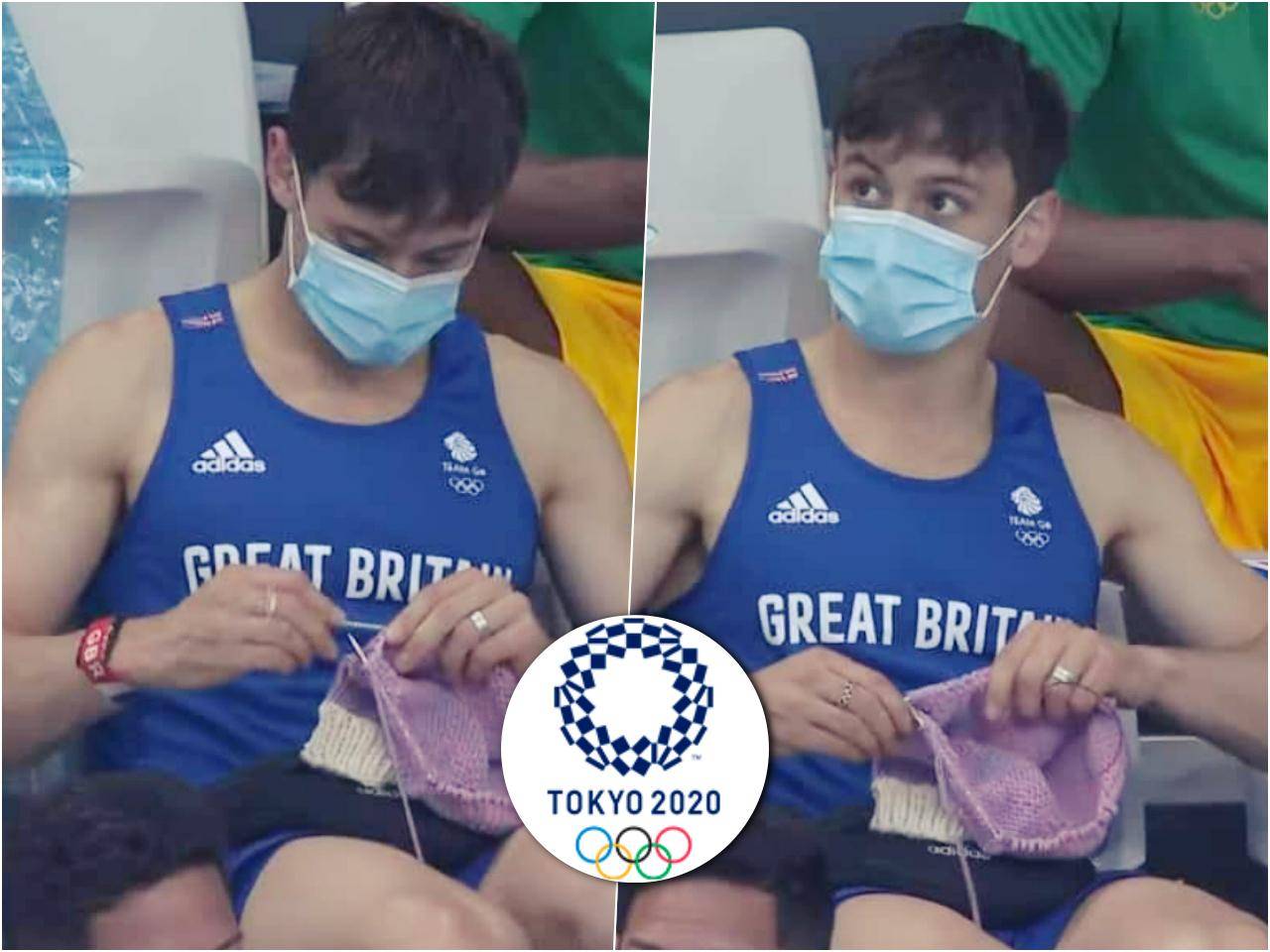 Captan al clavadista olímpico Tom Daley tejiendo en las gradas y se vuelve viral