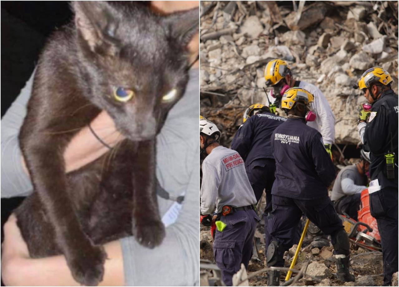 Gato negro sobrevivió a derrumbe de edificio en Miami