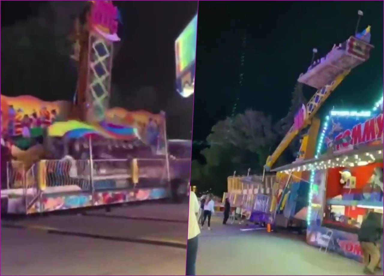 ¡Tremendo susto! Captan falla en juego mecánico de una feria