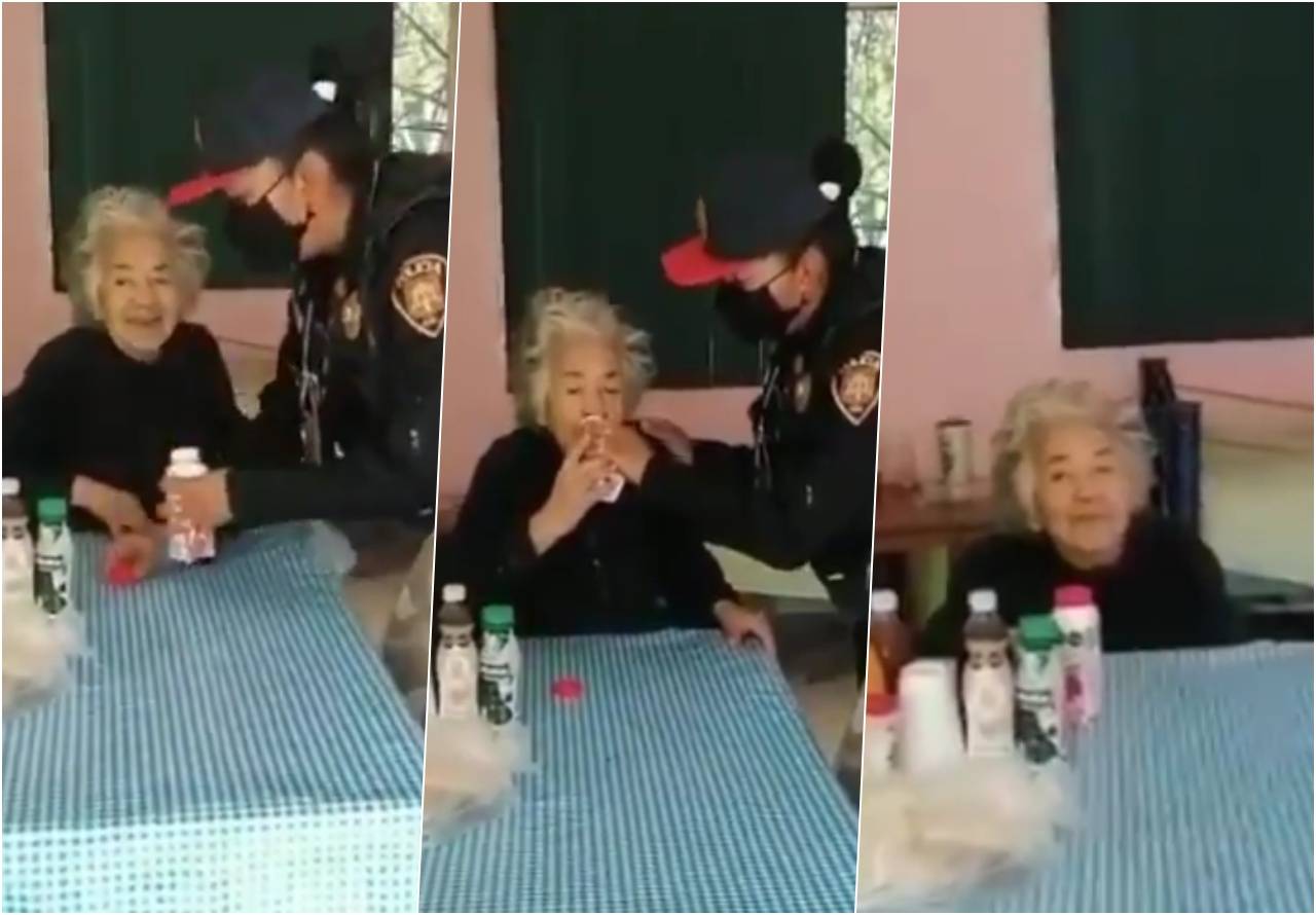 Agentes de la policía le llevaron alimento a la abuelita abandonada