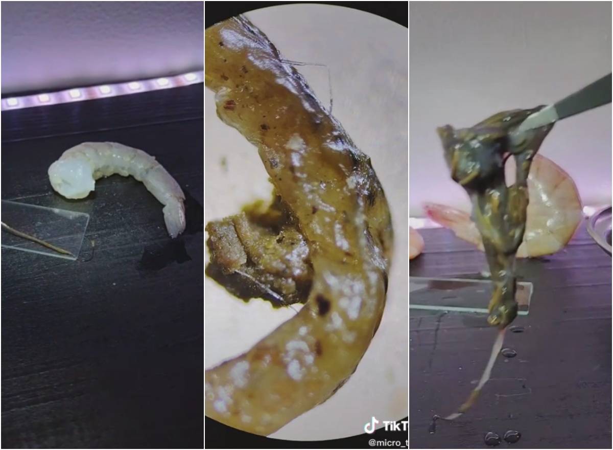 Tiktoker analiza bajo el microscopio la ‘vena’ de un camarón y se vuelve viral