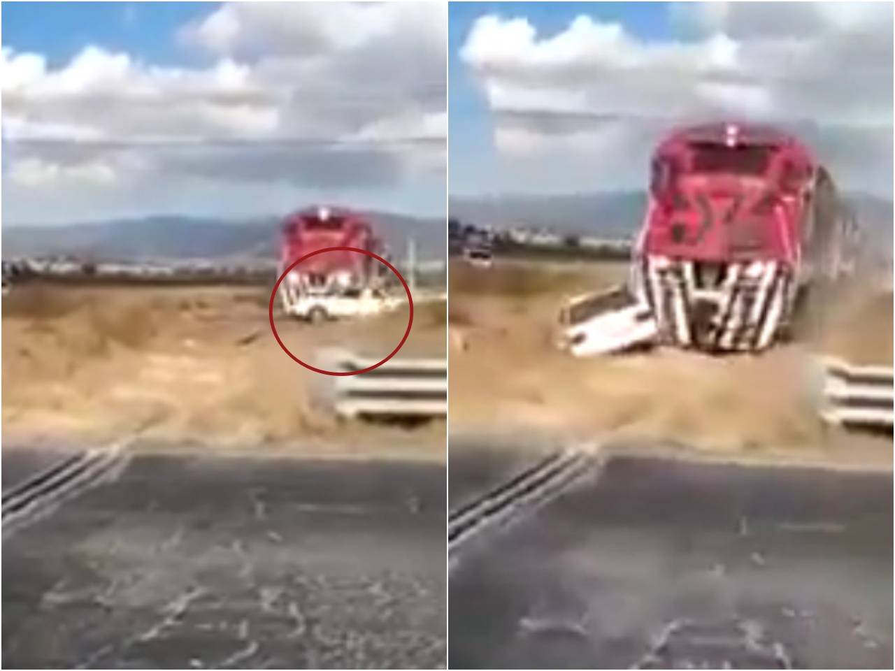 Video: Tren arrolla taxi que intentó ganarle el paso en vías de Hidalgo